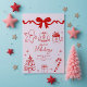 Hand Drawn Doodle Bow Red Pink Christmas Holiday Postcard