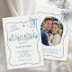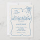 Hand-Drawn Doodle Frame Bow Winter Blue QR Wedding Invitation
