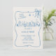 The winter blue palette paired with warm ivory creates a sophisticated look that highlights the hand-illustrated frame and festive motifs like wedding bells and bows. The included QR code makes it easy for guests to access your wedding website, RSVP online, or find directions — combining classic charm with modern convenience.