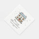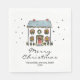 Celebrate your annual Christmas party with these charming paper napkins featuring a festive hand-drawn doodle-style house with a wreath on a red front door, little trees, and stars. Fully editable template with the hosting names, date, and a "Merry Christmas" message.