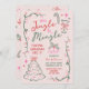 Invite your friends to a fun jingle and mingle Christmas party with this trendy hand-drawn invitation in a vintage-inspired coquettish style in warm red and green, and hot pink against a blush background.
