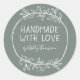 Hand Drawn Dusty Green Handmade With Love Classic Round Sticker