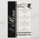 This sleek minimalist design is elegant and perfect! The clean lines make the day all about you while showcasing class and attention-to-detail. The front showcases script calligraphy text, apart from the word "menu" the text is fully customizable. Other tiny details apart from the light and dark color block style are the sweet little hand drawn details. The wine bottle, and bow on the front. If you want to change the word "Menu", reach out and let me know what you'd like. This design has space for all the basics, AND you have space to add more if you need it. The front is beautifully framed and the back has beautiful pin stripes and a tiny frame where you can add the initials of your couple, along with a sweet hand-drawn style strawberry.
