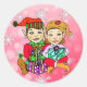 Hand drawn Elf girl and boy holding Gifts Classic Round Sticker