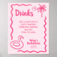 Introducing our "Final Flamingle" Bachelorette downloadable drinks poster, the perfect way to kick off an unforgettable celebration with your closest friends! This stunning poster features a vibrant hot pink hand-drawn squiggle frame that adds a playful touch to the soft pink background. Adorned with whimsical hand-drawn icons of a flamingo pool toy, a refreshing coconut drink, and a palm tree, this welcome poster sets the scene for a tropical and fun-filled weekend.