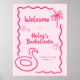 Introducing our "Final Flamingle" all in one Bachelorette downloadable welcome poster, the perfect way to kick off an unforgettable celebration with your closest friends! This stunning poster features a vibrant hot pink hand-drawn squiggle frame that adds a playful touch to the soft pink background. Adorned with whimsical hand-drawn icons of a flamingo pool toy, a refreshing coconut drink, a palm tree and beautiful hibiscus flowers, this welcome poster sets the scene for a tropical and fun-filled weekend.