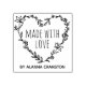 Floral made with love stamp for your hand made goods. Floral made with love stamp personalised with your name or business name. Made with love stamp for your small business with a hand-drawn floral wreath in the shape of a heart.