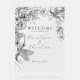 Celebrate your union with this wedding welcome sign, featuring a hand-drawn floral wreath, adorned with delicate hummingbirds. The intricate botanical details create an earthy nature feel, while the couple’s names are displayed in a modern elegant script calligraphy. Perfect for nature-inspired, garden, or whimsical weddings.