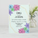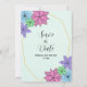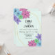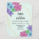 This wedding invitation showcases hand-drawn flowers which add decoration to the corners of the invitation. Both sides are mint green/teal with flower corners and a gold shape highlighting the details of the wedding. The template is customisable to personalise this design.