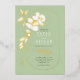 This feminine, modern, elegant and romantic sage green wedding invitation is designed to complement a wide range of style preferences. Featuring hand-drawn flowers in elegant plain white and sophisticated real gold foil, it evokes the timeless beauty of a love story. The invitation creates a warm, inviting atmosphere that will charm your guests with its tone and grace. The gold foil graphics can be customised to rose gold or silver. The word "Wedding" is in foil but also looks beautiful in white or dark grey colour. This fully customisable template allows you to change the background and text colours to perfectly match your wedding palette. Click the 'Edit using Design Tool' button to personalise the design, and / or feel free to add your photo to the backside as well.