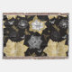 Beautiful hand-drawn flowers of golden grey and white and butterflies on a black background.