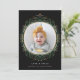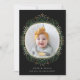 Hand drawn wildflower inspired illustrated wreath with central photo on white; custom greeting with family name and year and optional message on the back. Black shown here.