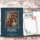 Hand-drawn frame modern teal blue Merry Christmas Holiday Postcard