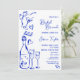 Unique cobalt blue Hand Drawn Contemporary Retro French Fun Invitation with a bow frame, a whimsical trendy artwork for your french wedding by Savanamm