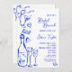 Hand Drawn French Blue Bridal Brunch French Bow In Invitation