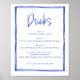 Hand Drawn French Blue Wedding Bar Drinks Poster