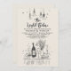 A hand-drawn, funky, and stylish rehearsal dinner invitation designed to make a warm and inviting impression at first sight. This whimsical invite features quirky illustrations of a dinner table with wine, flowers, candles, plates. The handwritten style typography adds to its charm and uniqueness, making it a truly distinctive and delightful invitation.