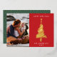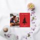 Hand Drawn Gold Line Red Christmas Tree | Photo Foil Holiday Card