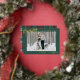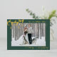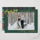 Send holiday cheer with this horizontal flat Christmas card. The front highlights a large photo set against a rich emerald green background, accented with a doodle swag of pine greenery and hanging ornaments in a gold foil style that can also be switched to silver. The top right has space for your names or family name and the year in a matching gold handwritten font, while the bottom right features “Merry Christmas” in an elegant gold script calligraphy style.