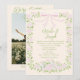 Hand Drawn Green Pink Bow Floral Summer Wedding Invitation