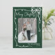 Send holiday cheer with this vertical Christmas card design. The front features a vertical photo in the center, framed by a swirling ribbon-style doodle border. A cute hand-drawn coquette bow sits in the top right corner, while “Merry Christmas” appears in handwritten script at the top left. The bottom right includes space for your family’s last name or individual names, along with the year. The background is a deep emerald green, with all doodle art and fonts in white for a clean, festive contrast.