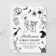 Set the tone for a stylish and spooky adult Halloween party with this black-and-white girls night halloween party invitation. Featuring martini glasses, dancing skeletons, ghosts, and vintage-style illustrations, this elegant template is perfect for Halloween gatherings with a touch of class.