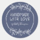Hand Drawn Handmade With Love Personalised Blue Classic Round Sticker