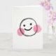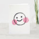 This greeting card features a big smiley face centered on a plain white background. The face is a simple circle drawn with a thick black line that looks a bit like crayon, with a slightly uneven edge. Inside, there are two solid black dot eyes and a small curved smile that feels friendly and calm. On each cheek, there’s a large pink blush mark with visible crayon-like strokes, making the expression look sweet and a little shy ❤️. There’s no other character or object in the scene, so all the attention stays on that warm, happy face. The card does not show any printed message or lettering anywhere on the front, leaving space for your own note 💌. It’s an easy way to send a small reminder that someone is cared for, especially with a little treat like 🍫.