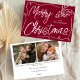 Hand Drawn Holly Berry Burgundy 2 Photo Christmas Holiday Card