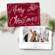 Hand Drawn Holly Berry Burgundy Photo Christmas Holiday Card