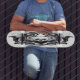 Hand Drawn Illustration of Skull and Squid Skateboard