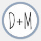 Hand drawn initials typography dusty blue wedding classic round sticker