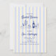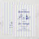 Celebrate the upcoming nuptials of your favourite bride-to-be in style with our whimsical mediterranean themed bridal shower invitations! This invitation features a hand-drawn illustration of food and wine in a fun and playful style accompanied by a casual, handwritten script font that perfectly captures the excitement and joy of the occasion. The invitation sets a serene and joyous tone for the occasion, featuring a soft and inviting colour palette of buttercream and soft blue stripes. This tranquil backdrop is perfectly complemented by the dark blue text, creating a harmonious blend of colours.