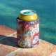 Hand Drawn Lemons, Blue Leaves Pattern. Can Cooler