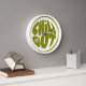 Hand-drawn lettering phrase in the shape of a ball clock