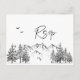 Hand Drawn Mountains Forest Wedding RSVP Postcard