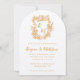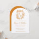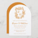 Hand Drawn Orange Floral Crest Monogram Wedding Invitation