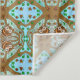 Hand Drawn Owl Mandala Artwork in orange, brown, blue and green tapestry.