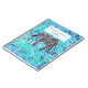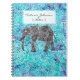 A modern, original hand drawn black and white tribal wild ornate elephant on a boho bright blue and turquoise watercolor mandala floral paisley background.A vibrant summer design.