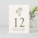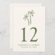 Enhance your wedding decor with this nature-inspired table number card, featuring hand-drawn green palm trees at the top of a warm cream background. The fresh and modern design suits garden, tropical, or destination weddings. Customise each card with the couple’s names, wedding date, and table number to add a personal touch to your celebration. This card measures 5"x7". Personalise each number individually and add to your cart.