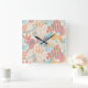 Hand Drawn Pastel Abstract Floral Pattern Square Wall Clock
