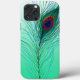 Elegant turquoise, purple, blue and green hand drawn peacock feathers phone case.
