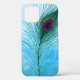 Elegant turquoise, purple, blue and green hand drawn peacock feathers phone case.