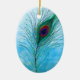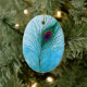 Hand drawn peacock feathers, teal, turquoise, purple and blue Christmas ornament. On the back you can change the text to say whatever you want.