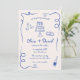 Hand Drawn Photo QR Code Blue Whimsical Wedding Invitation