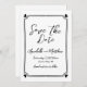 Simple Hand Drawn Whimsical Black and White Wedding Save the Date. This European Inspired Black and White Save the Date Card features a clean, minimalist design perfect for couples seeking timeless elegance. A subtle hand-drawn frame with charming black hearts in each corner gently encircles your wedding details, presented in a mix of script and handwritten-style fonts for a look that feels both stylish and personal.