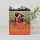 Stylish, elegant and personalised; featuring your photo with handwritten styled type accented by hand drawn pine leaves and berries. The back features a festive snow pattern.