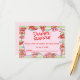 If you looking for an elegant and unique hand drawn Italian diaper raffle for your baby girl shower , this one is perfect for you. And as you see it features a hand written whimsical script in magenta red on pale pink clean background. And watercolor blue and green stripes frame. And on the right side you got a hand drawn floral bouquet. To match the whole baby shower in bloom theme.