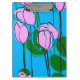 Hand Drawn Pink Tulips on Sky Blue Clipboard