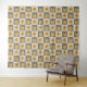 Retro Inspired Pumpkin & Flower Check Pattern - Warm Yellow & Cool Blue ----- This charming, hand-drawn design features whimsical pumpkins and flowers in warm yellow tones, set against a cool blue and neutral oatmeal beige check pattern. It's a perfect blend of retro and modern styles, ideal for adding a touch of autumn and Thanksgiving cheer.